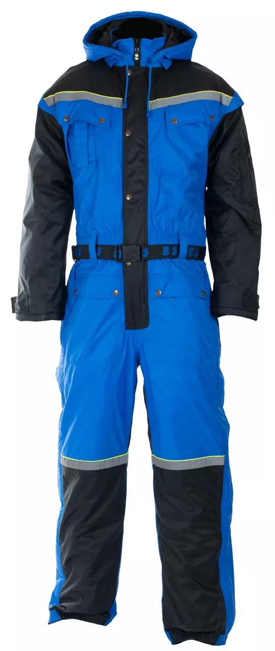 Vår vatterte kjeledress har ytterstoff i kraftig PU-belagt Oxfordnylon, 150 grams vattering, tapede sømmer, lange kraftige glidelåser i front og bein, klaff over glidelås. Mobillomme høyre bryst. Reflex på rygg, bryst og bein, strikk i liv og nederst på bein, fleecefôr på krave, avtagbar hette, luftehull under armene og belte i liv.